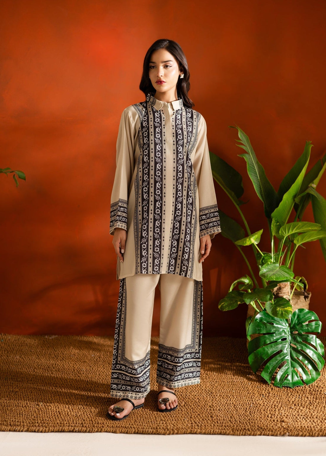 Beige & Black Striped Floral Printed Co-ord Set U7 |Utsav Bazar
