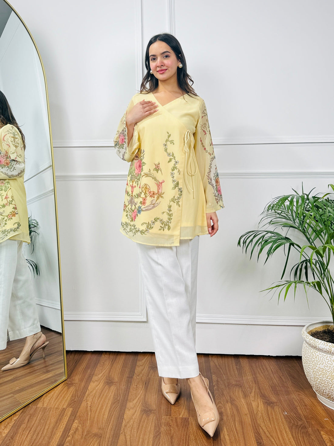 Women’s Yellow Georgette Co-ord Set with Floral Baroque Print U26