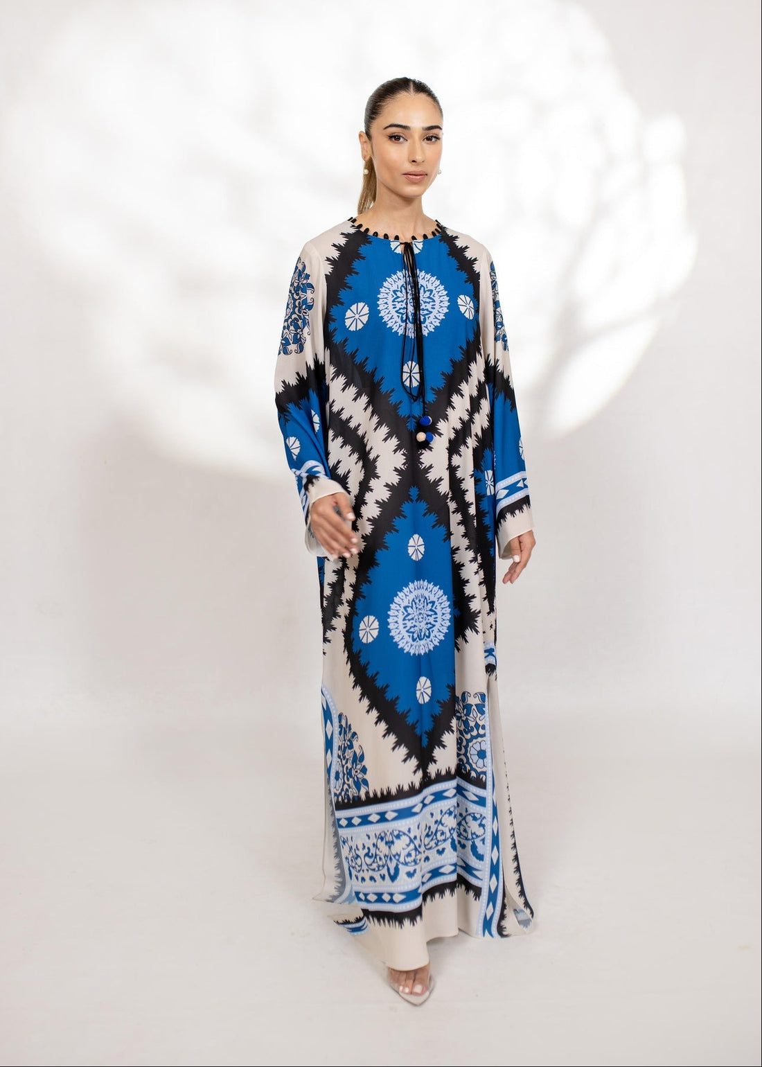 Women Blue & Ivory Geometric Ikat Print Full Length Rayon Kaftan U41