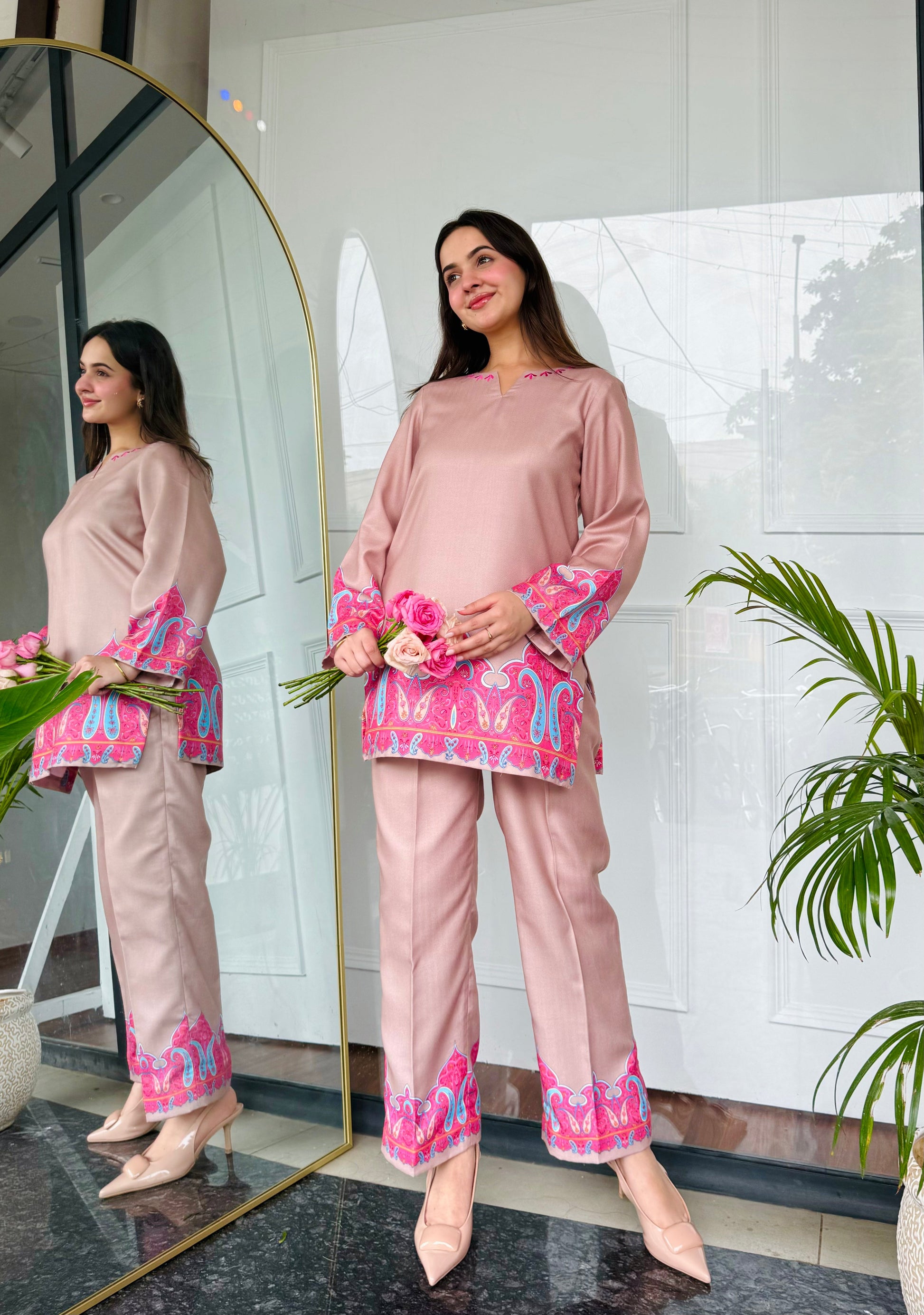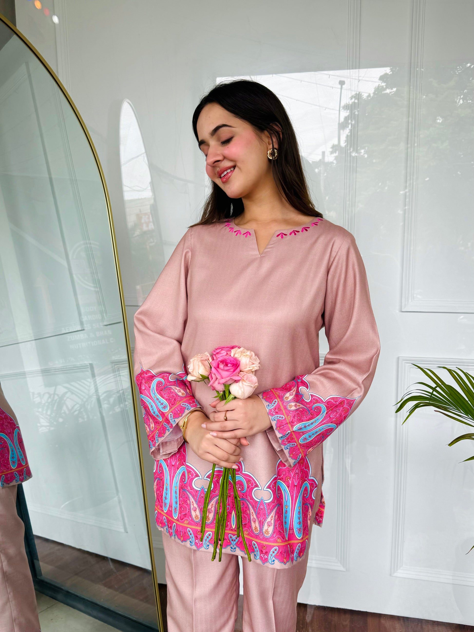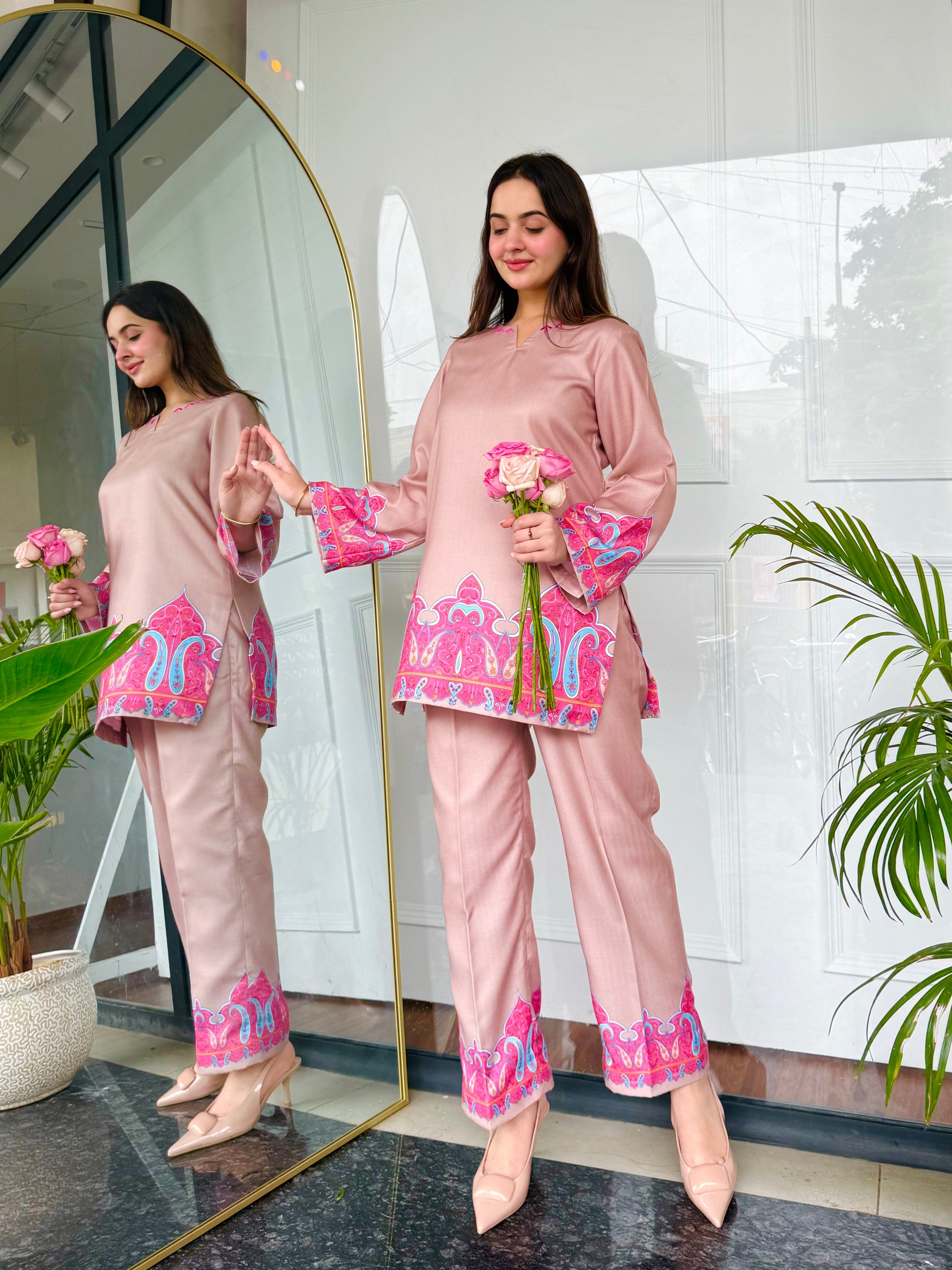 Elegant Blush Pink Paisley Print Co-ord Set for Women U30